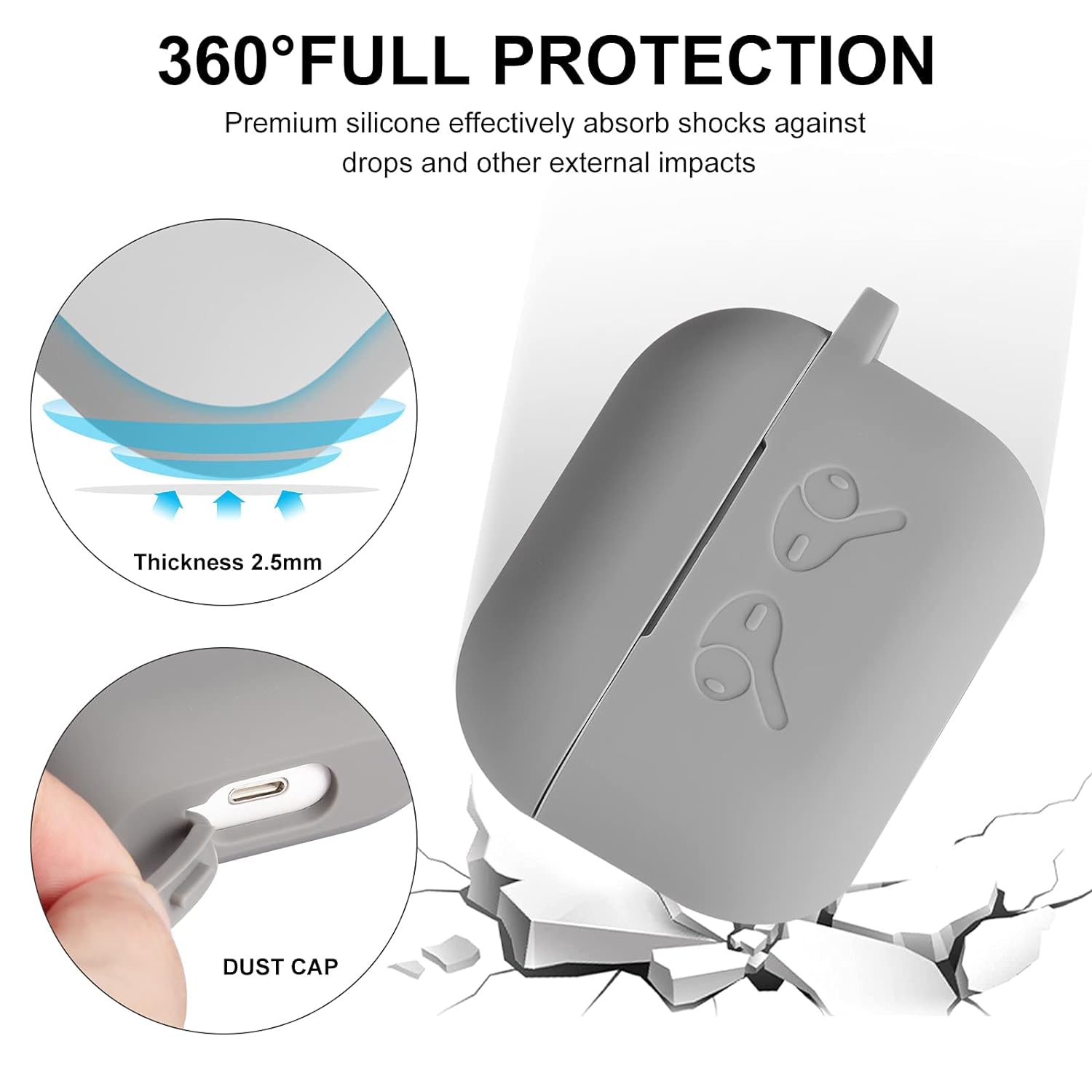 Shock-Absorbing and Drop Protection: Applying the latest technology, the silicone is extremely silky and soft, and it feels great in your hands. The silicone protective case fits snugly on the AirPods Pro and is not easy to drop.